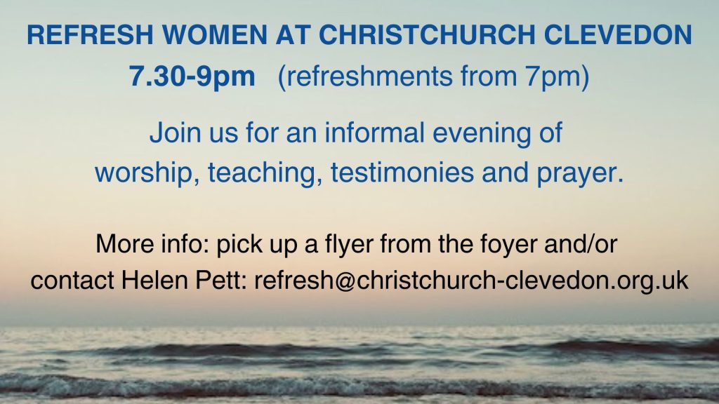 If you have any questions at all, please do contact Helen Pett on refresh@christchurch-clevedon.org.uk